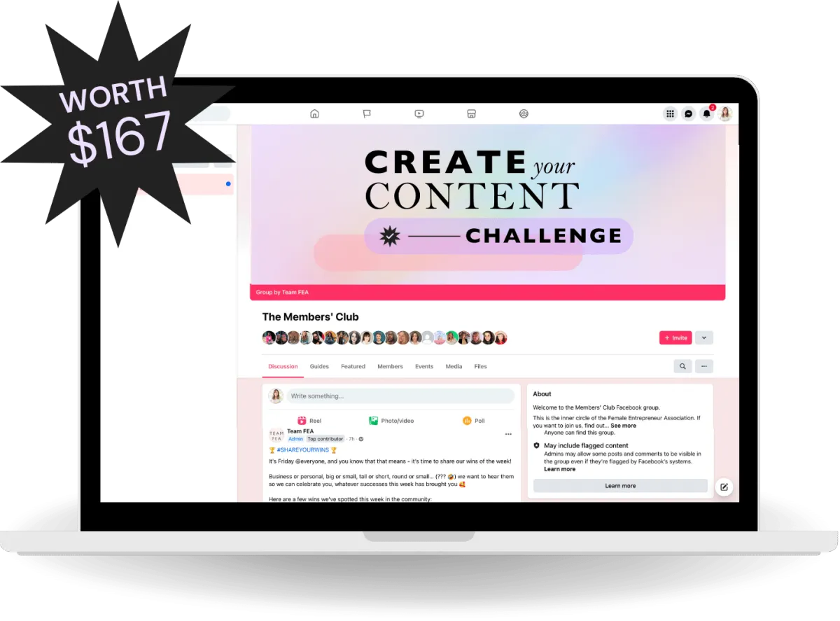 The FEA Members’ Club is the original business growth membership that helps you to build your business and show you the proven steps to grow your business and make more sales using the FEA Success Pathway, plus gives you access to an incredible library of 80 expert classes, a worldwide community of female entrepreneurs, and access to the best team to help your business thrive.